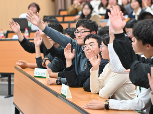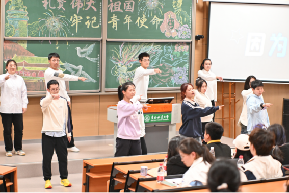 在互动问答环节,同学们踊跃抢答,通过这些问题,他们对国家的发展历程、党和人民的奋斗史有了更深入的理解,激励自己在未来的道路上不忘初心、砥砺前行。