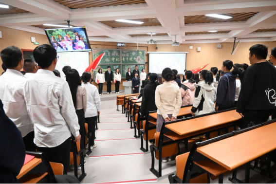 10月22日晚,为庆祝祖国七十五年华诞,激励同学们在新时代勇担使命,由未来技术学院、马克思主义学院、生态学院联合举办的2024级“礼赞伟大祖国,牢记青年使命”政治理论学习示范会于锦绣楼T401室隆重开幕,并取得圆满成功。未来技术学院李梦阳、张晋榕、王欣鑫老师,马克思主义学院王振越、董航岐老师, 生态学院于文浩、白海波老师,出席本次政治理论学习示范会。