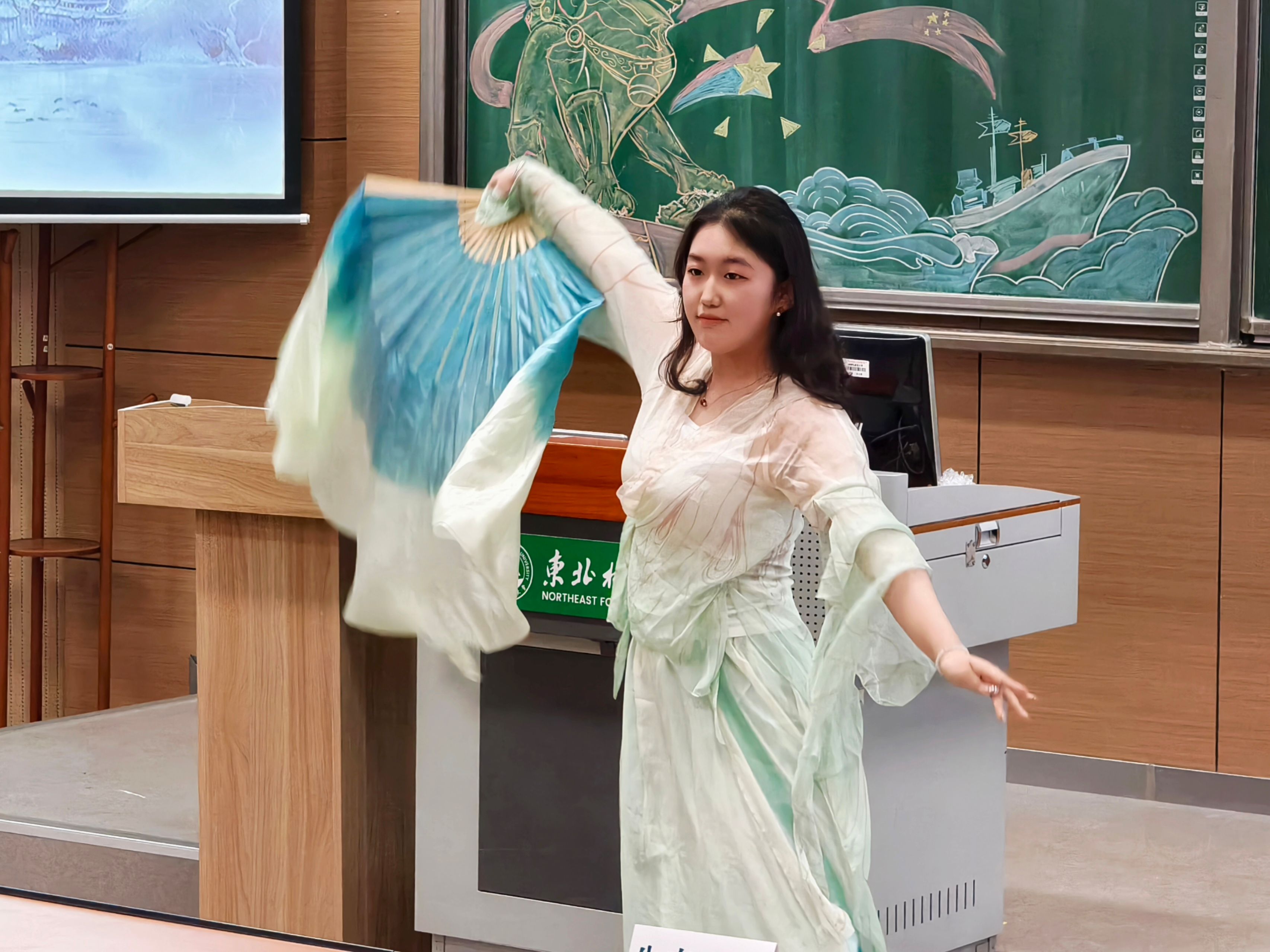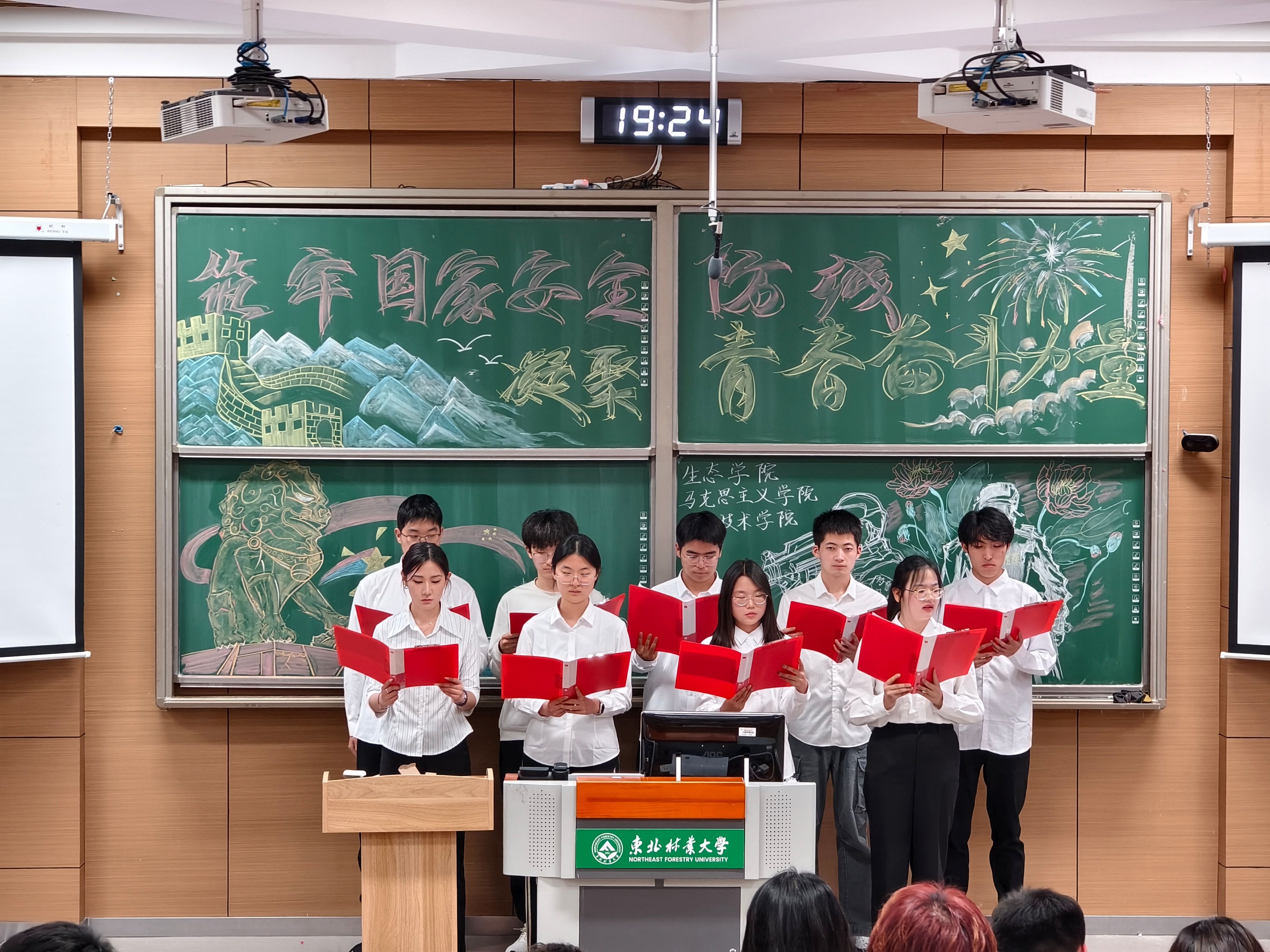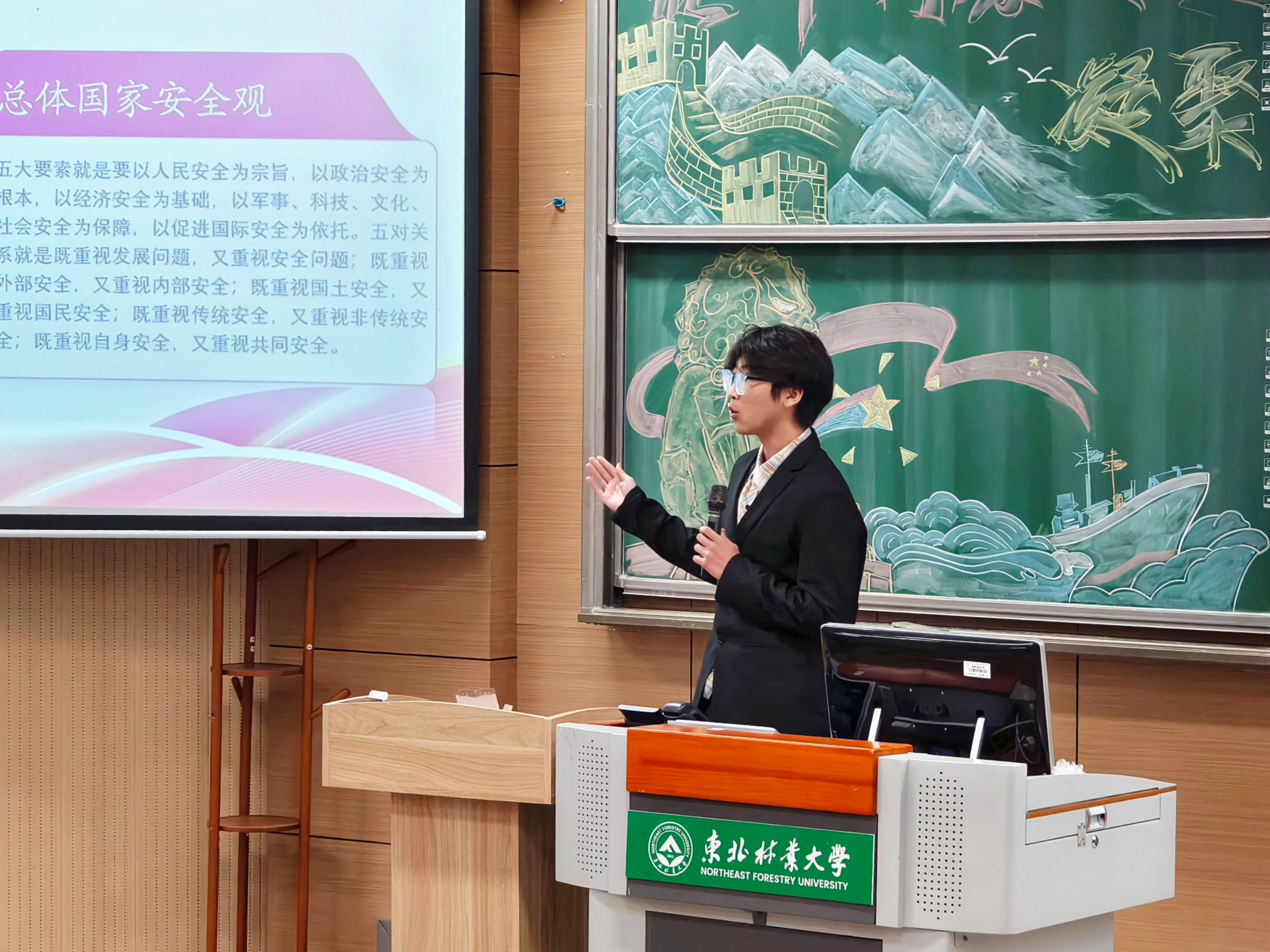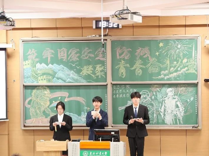 马克思主义学院邹子安同学深切论述了青年群体在国家安全中承担的责任与使命。朗诵《百年风雨里的青春护旗手》与歌曲《我乘着风飞过来》用声音和旋律展现青年群体踔厉奋发、护国担当的青春姿态,传递出新时代青年的信仰力量。