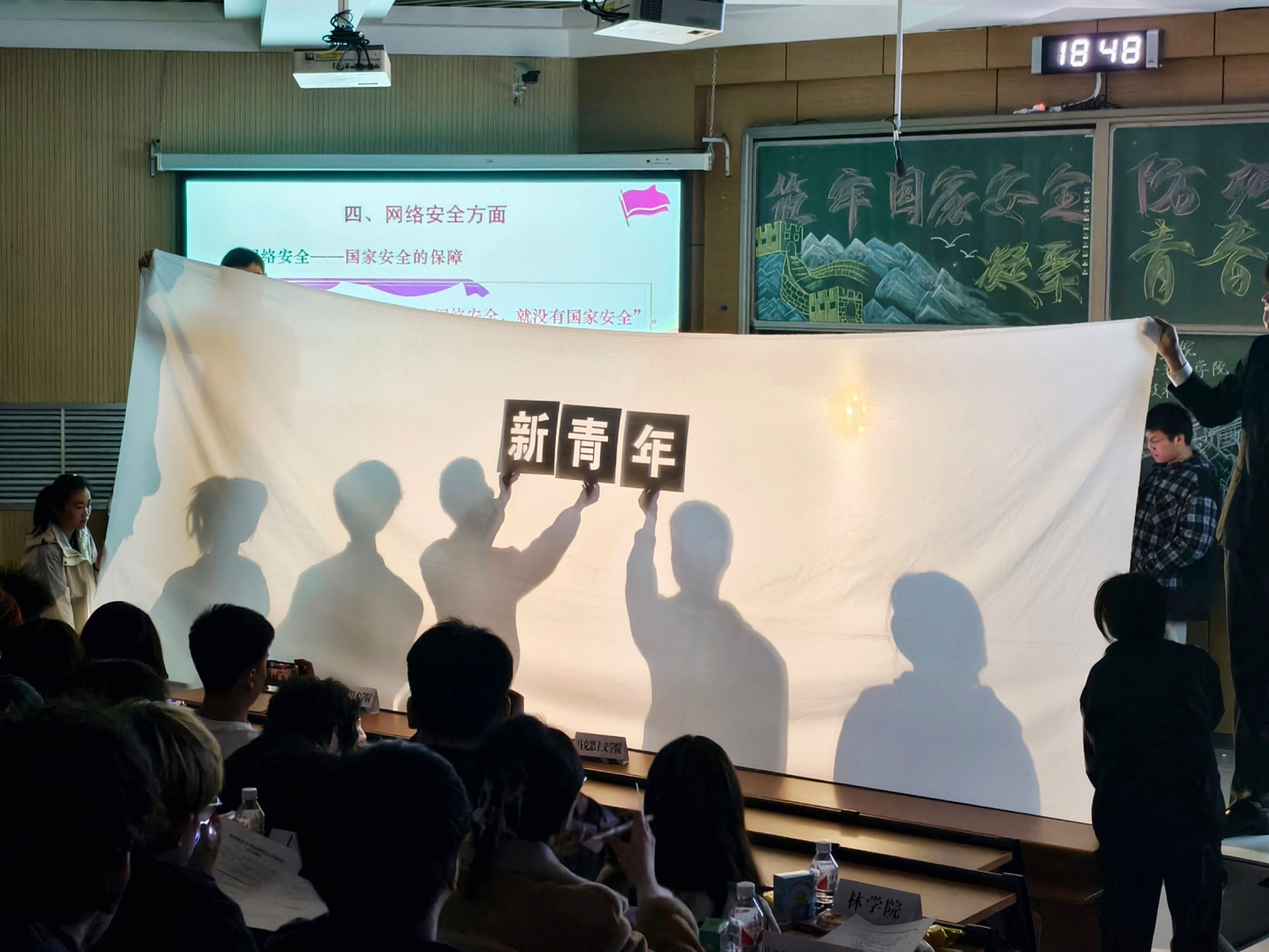 活动在舞蹈《小城夏天》的热场中拉开帷幕,青春洋溢的舞姿迅速点燃现场氛围。未来技术学院邹智博同学率先讲述国家安全的历史脉络与现实意义,带领观众从国家整体安全体系角度深化认知。舞蹈《青丝》以古典韵味展现文化自信的艺术表达。舞台剧《觉醒年代》创新性地采用影子戏的形式演绎,高度还原近代革命历史,生动再现仁人志士捍卫民族尊严、探索民族复兴道路的艰辛历程,引发在场观众深切的情感共鸣。