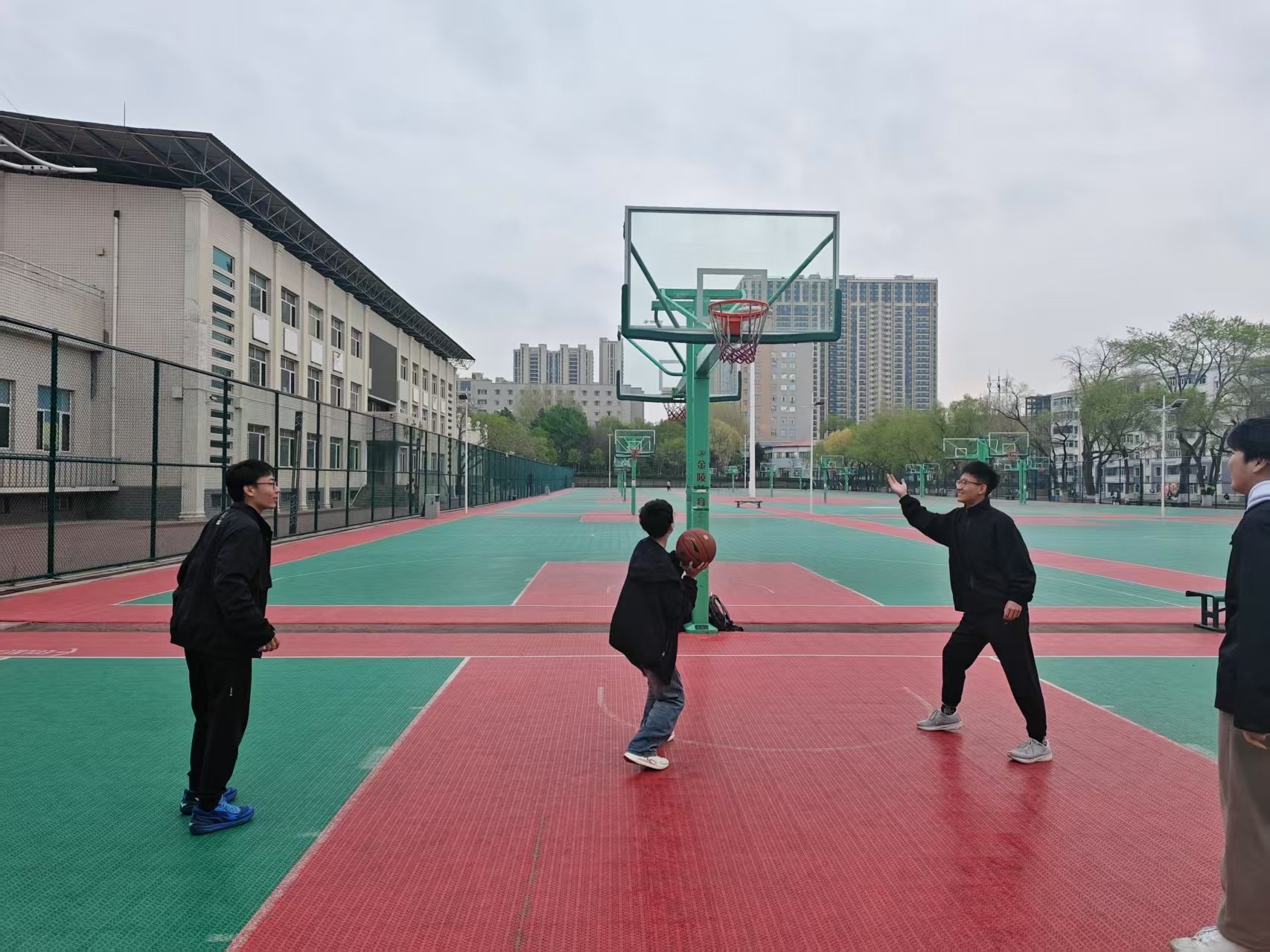 篮球在掌心翻飞,绕过障碍如游龙穿云。疾驰、跃起、投篮,球网轻颤如落雨。接力击掌刹那,风声与心跳共振。阳光下中,少年身影被灯光拉长,汗水折射出星辰般的光泽。